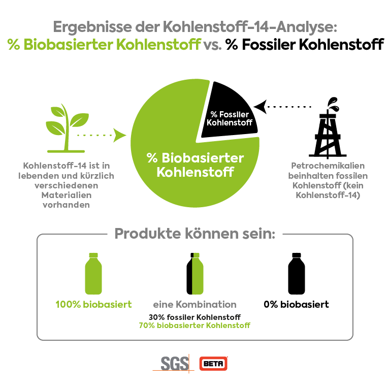 Biobasierte Materialien werden ganz oder teilweise aus Biomasse gewonnen. Biobasierte Tests mittels Kohlenstoff-14-Analyse werden verwendet, um die Menge an aus Biomasse gewonnenem Kohlenstoff im Vergleich zum gesamten organischen Kohlenstoff (TOC) oder Gesamtkohlenstoffgehalt (TC) zu messen. Da Kohlenstoff-14 nur in lebendem oder kürzlich verstorbenem Material vorhanden ist, ist die Kohlenstoff-14-Analyse mittels Beschleuniger-Massenspektrometrie (AMS) die effektivste Methode, um die Menge an biobasiertem Kohlenstoff im Gegensatz zu aus Erdöl gewonnenem Kohlenstoff in Rohstoffen oder einem Endprodukt zu bestimmen.
